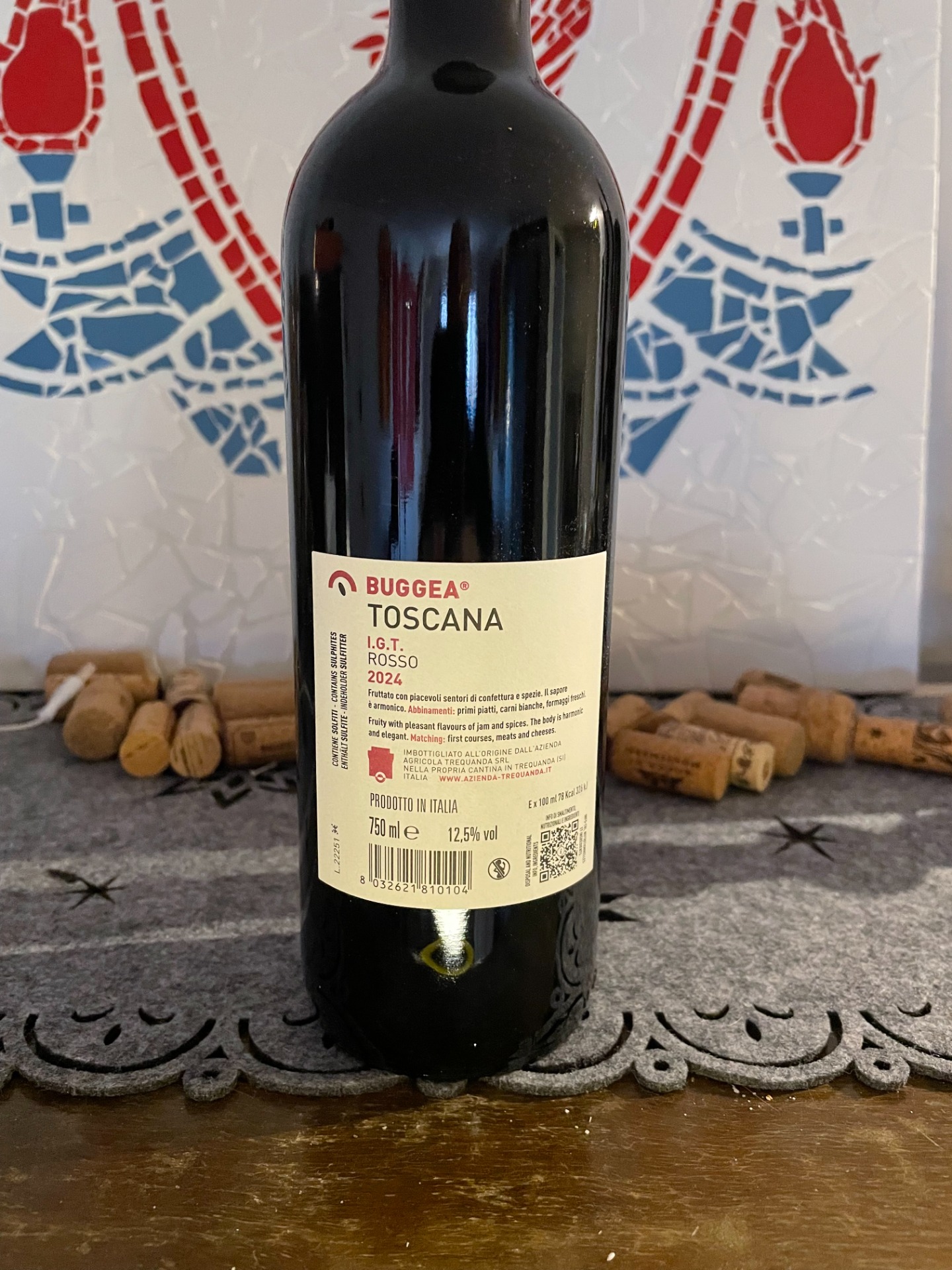 Detta exceptionella vin härstammar från Toscana, Italien, med årgång 2024 och en alkoholhalt på 12,5%. Druvsammansättningen är noggrant utvald för att skapa optimal balans och komplexitet, 70% Sangiovese, ,- regionens signaturdruva, 10% Merlot ger mjukhet och rundhet, 10% Cabernet Sauvignon ger struktur och djup och 10% Cabernet Franc för aromatisk elegans.