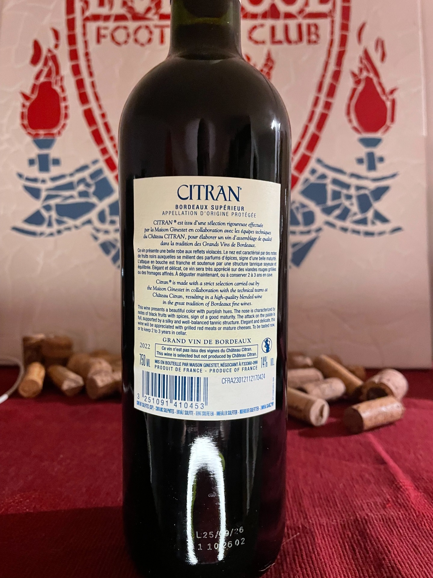 Château Citran Le Bordeaux de Citran 2022 på 14%, är en röd Bordeaux av klassiskt snitt, framställd av traditionella druvsorter från regionen, oftast en blandning av merlot och cabernet sauvignon, vilket ger vinet dess stadiga struktur och balanserade frukt. Årgången 2022 präglades av ett varmt och soligt klimat, vilket har resulterat i generös frukt, mjuka tanniner och en öppen, lättillgänglig stil redan i ung ålder. Jordmånen i Bordeaux präglas av grus, lera och kalksten, vilket bidrar till komplexitet och elegans i vinerna. Vinifieringen för denna cuvée sker vanligtvis i rostfria ståltankar och fat, med varsam extraktion för att behålla den friska frukten och regionstypiska stilen.