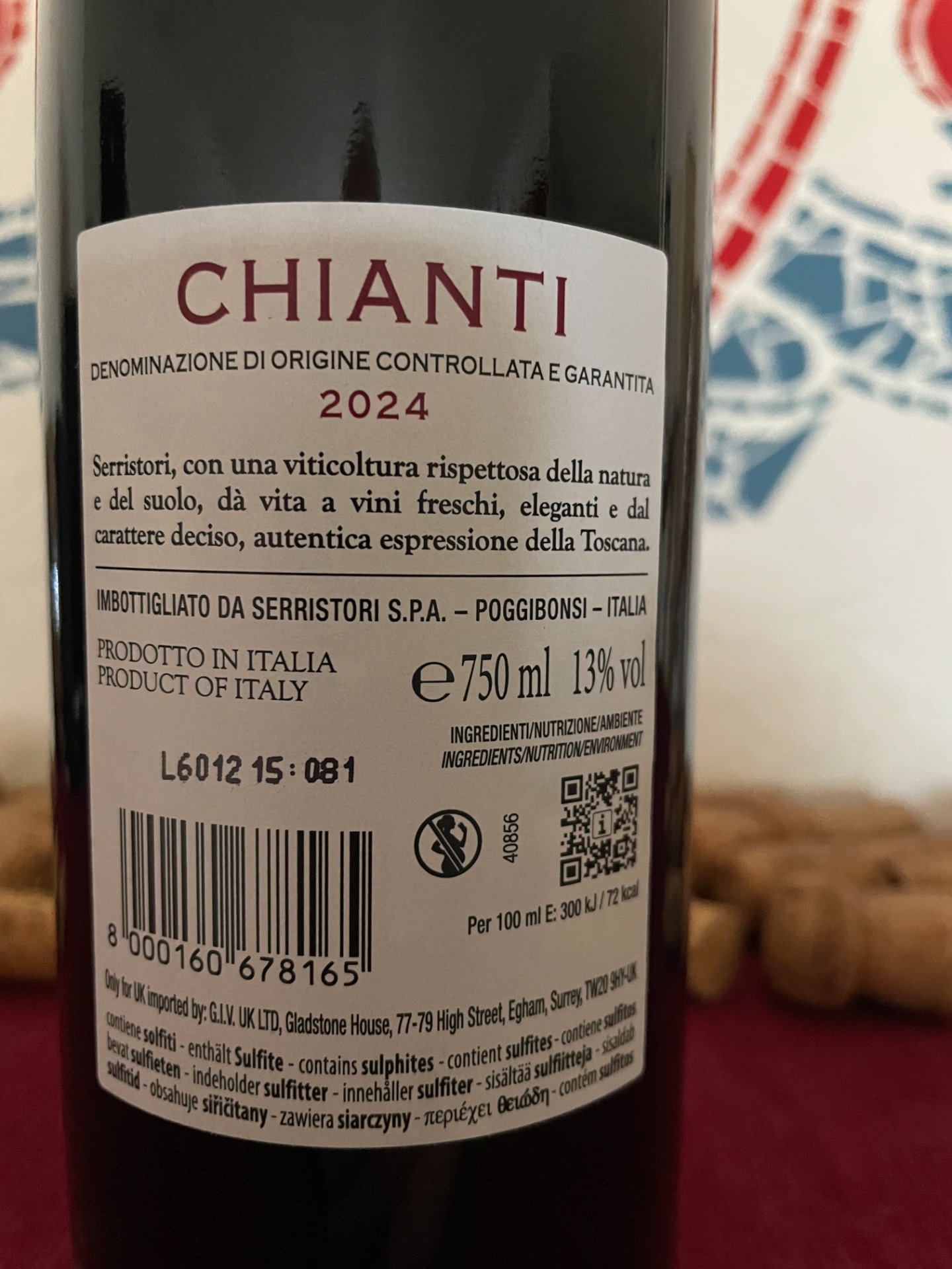 Serristori Chianti 2024 är ett klassiskt rött vin från den välkända Chianti-regionen i Toscana, Italien. Vinet buteljeras i en traditionell 75 cl-flaska och representerar den torra (secco) stilen som är så typisk för området. Även om exakt druvsammansättning inte är angiven för denna årgång, bygger Chianti-viner oftast på Sangiovese-druvan, ibland kompletterad av små mängder lokala eller internationella druvsorter. Årgång 2024 antyder en ungdomlig stil med friska syror, körsbärsbetonad frukt och eventuellt en touch av kryddighet, vilket ger vinet en tydlig struktur och imponerande fräschör.