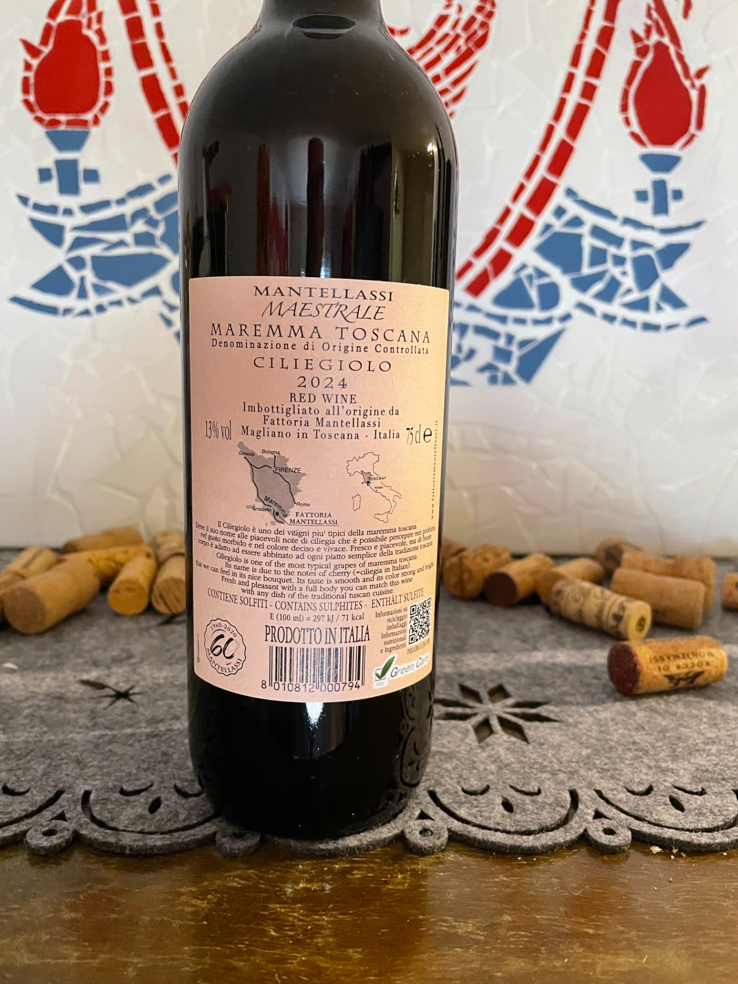 Med en alkoholhalt på 13% erbjuder detta vin den perfekta balansen mellan kraft och finesse. Ciliegiolo-druvan, känd för sina distinkta körsbärstoner (ciliegia betyder körsbär på italienska), har odlats i Maremma-regionen i århundraden och representerar en äkta toskansk vinmakartradition som få andra druvor kan matcha.