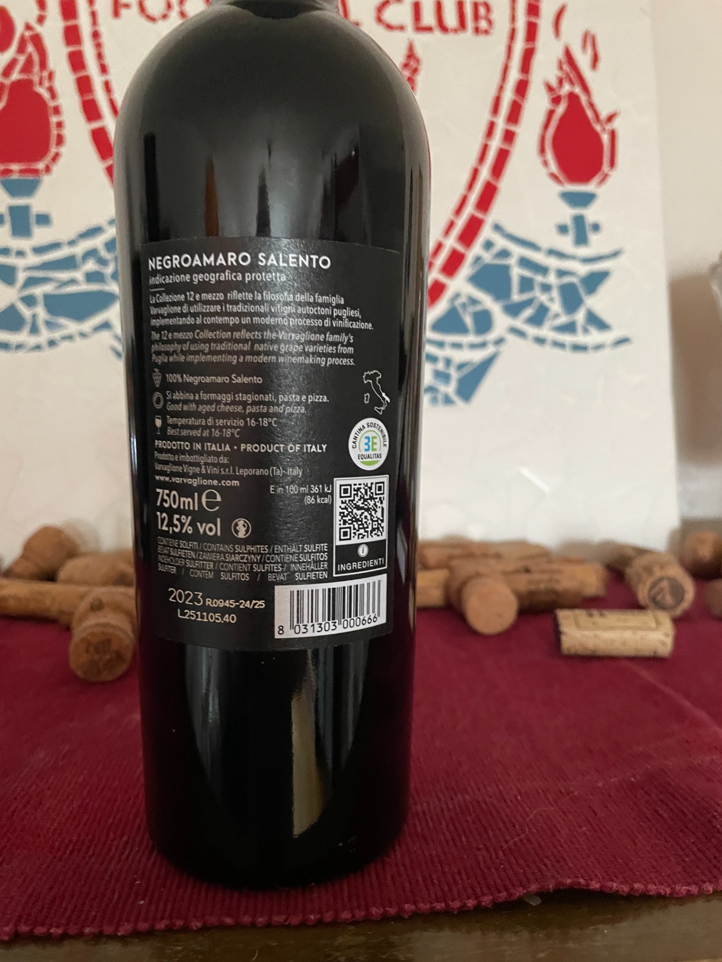 Varvaglione Cuvée 12 e mezzo 2023 från Salento i Apulien är ett rött vin som uttrycker den soliga syditalienska terroiren på ett generöst och inbjudande sätt. Även om den exakta druvsammansättningen i denna cuvée inte specificeras, brukar viner från detta område ofta domineras av traditionella södra italienska sorter som Negroamaro. Vinet är torrt och gjort för att framhäva både fruktighet och fräschör, med ungdomliga uttryck, eftersom årgången är mycket ung. Förvänta dig mörka bär, mogna körsbär och kanske inslag av plommon, örter och kryddor i doften. I munnen känns Cuvée 12 e mezzo vanligtvis medelfyllig med mjuka tanniner och en rund, behaglig avslutning.