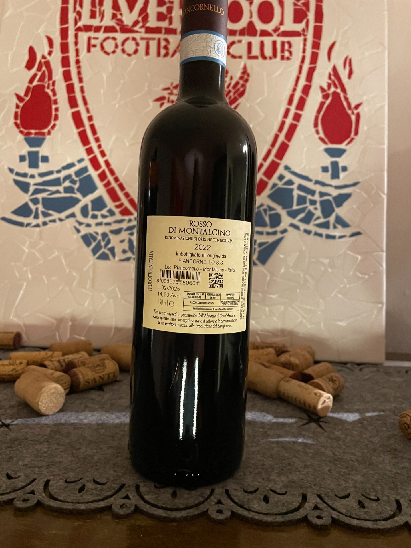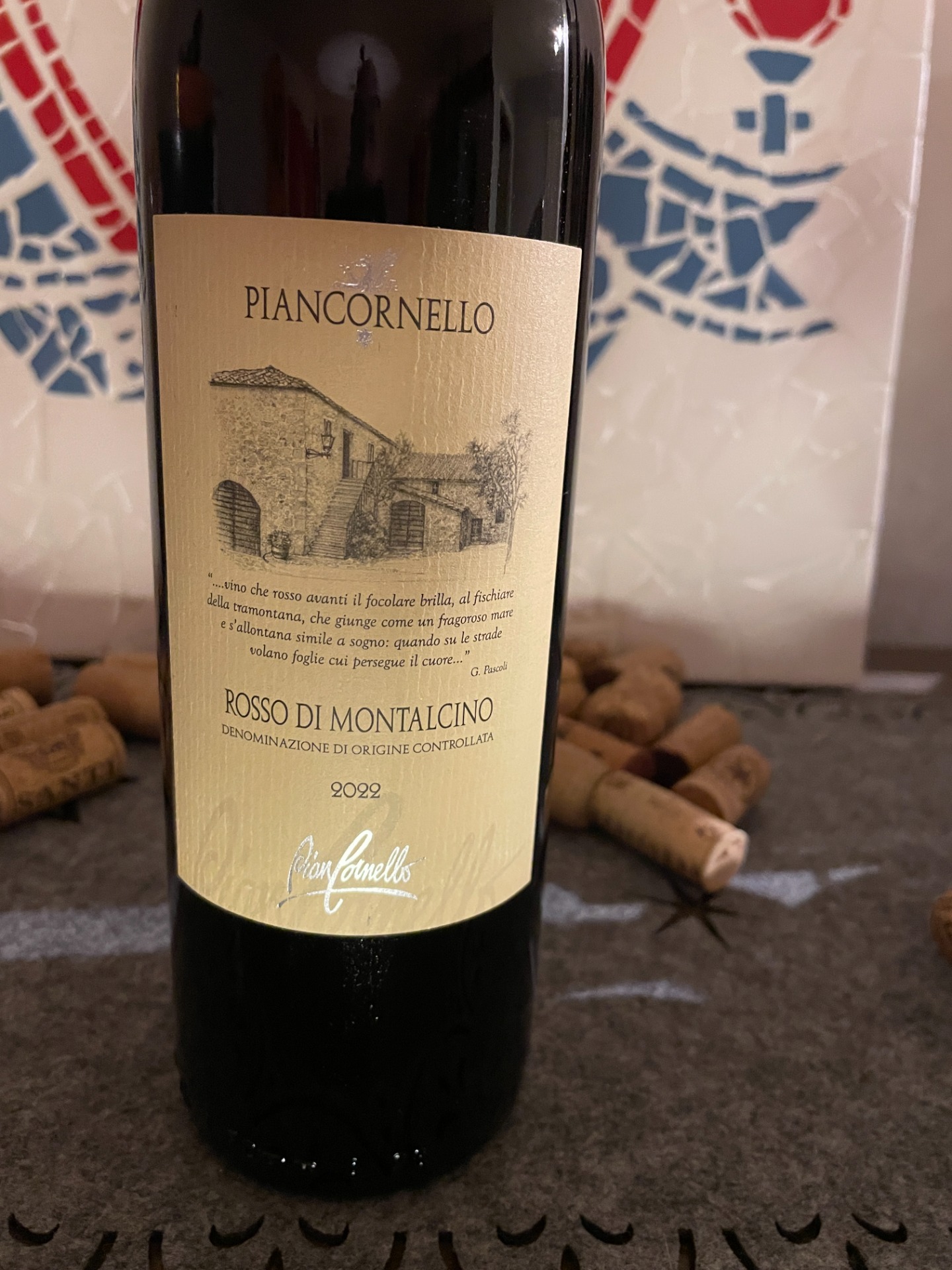 Piancornello Rosso di Montalcino 2022 är ett uttrycksfullt rödvin från hjärtat av Toscana, framställt huvudsakligen på den klassiska druvsorten Sangiovese. Denna årgång, 2022, erbjuder en ungdomlig friskhet med tydliga toner av röda bär såsom körsbär och hallon, tillsammans med subtila inslag av viol, kryddor och en lätt jordig karaktär. Vinifieringen sker oftast med en medellång maceration för att bevara frukten samtidigt som tanninstrukturen byggs upp, och lagringen sker både på ståltank och fat, vilket framhäver druvans renhet och Montalcinos särprägel.