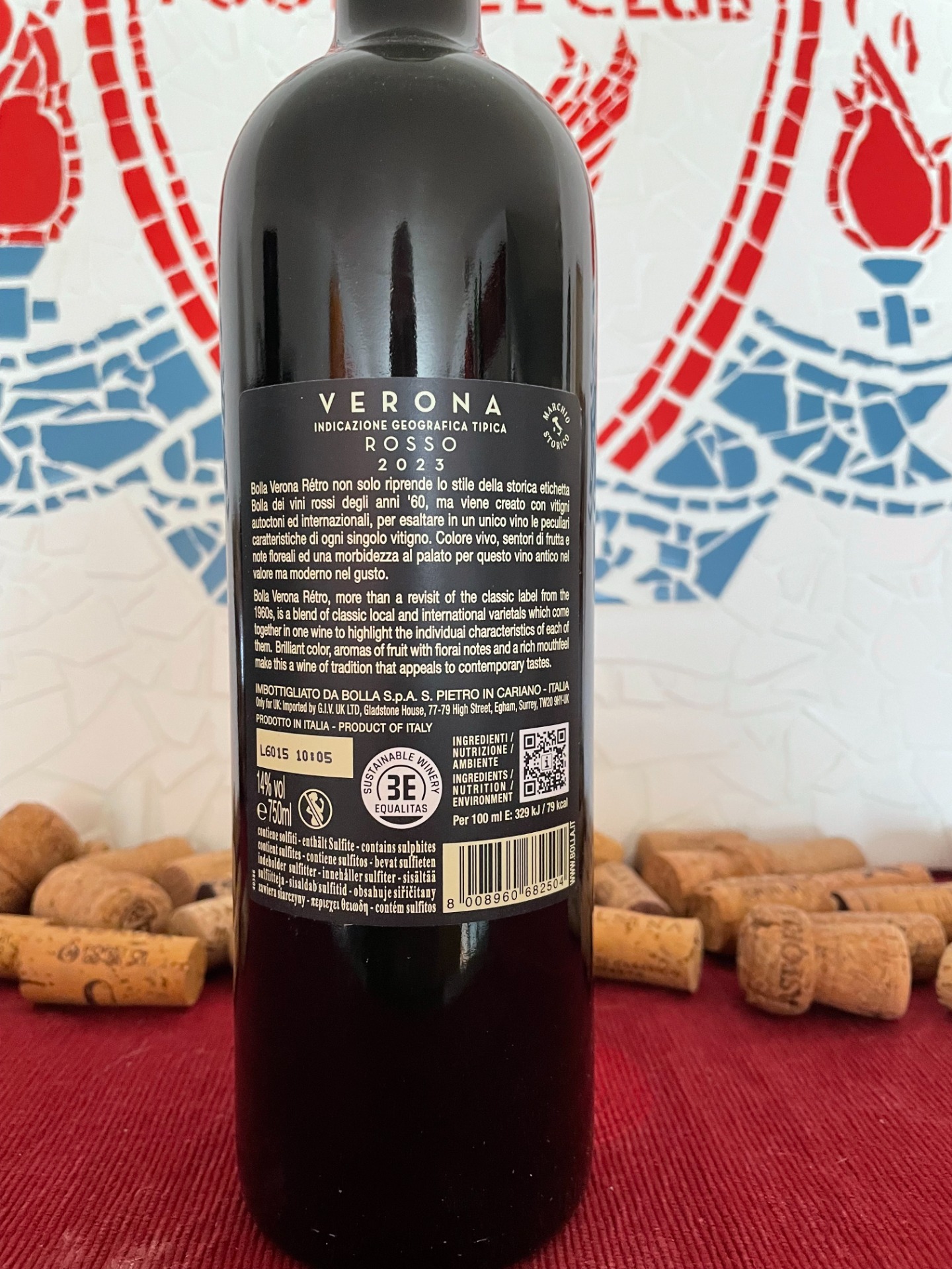 Bolla Rosso del Veronese 2023 är ett rött vin från hjärtat av Venetien, en region i nordöstra Italien känd för sina eleganta och matvänliga viner. Det här vinet är märkt som "Cuvée Retro Verona", vilket antyder att det är en cuvée, skapad av flera traditionella druvsorter från området – så som Corvina, Rondinella, Cabernet Sauvignon och även lite Merlot. Exakta procent blandningen kan variera och är inte specificerad, men stilen är klassiskt venetiansk: djup, bärig och ofta med inslag av körsbär, svarta vinbär och subtil örtighet, kompletterat av en behaglig syra och mjuka tanniner. Årgången 2023 ger vinet en frisk och ungdomlig känsla, där frukten står i centrum, men även fatkarraktär finns då det lagrats en kortare tid i ekfat.