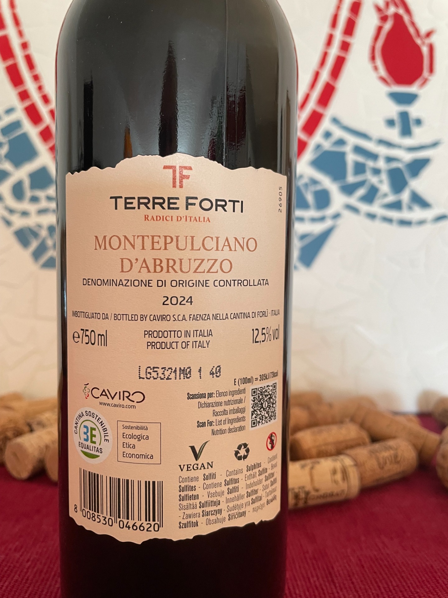 Terre Forti Montepulciano d'Abruzzo 2024 är ett rött vin från Abruzzoregionen i Italien, producerat av druvsorten Montepulciano, som traditionellt ger fylliga och generöst fruktiga viner. Årgången 2024 har ännu inte hunnit utveckla några mognadstoner, vilket innebär att du kan förvänta dig ungdomliga och livliga aromer, ofta med inslag av mogna körsbär, plommon och ibland en lätt kryddighet i bakgrunden. Viner från denna region har vanligtvis en vänlig syra och mjuka, avrundade tanniner, vilket gör dem tillgängliga att dricka unga men även kapabla att vinna lite på kortare lagring. Vid vinifieringen är det vanligt att man jobbar med temperaturkontrollerad jäsning på ståltank för att bevara druvans primära aromer och fräschör.